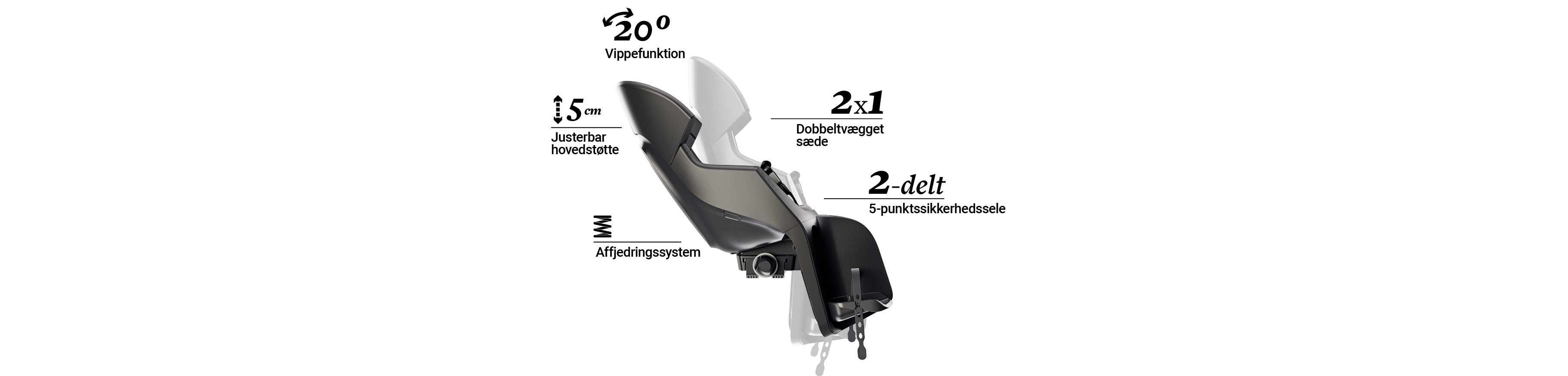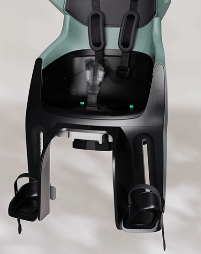 Vippefunktionen er udviklet med særligt henblik på, at børn ofte falder i søvn under transport i cykelstolen. Med et enkelt greb justeres stolen til en behagelig 20° tilbagelænet position, så dit barn kan sove komfortabelt under turen.